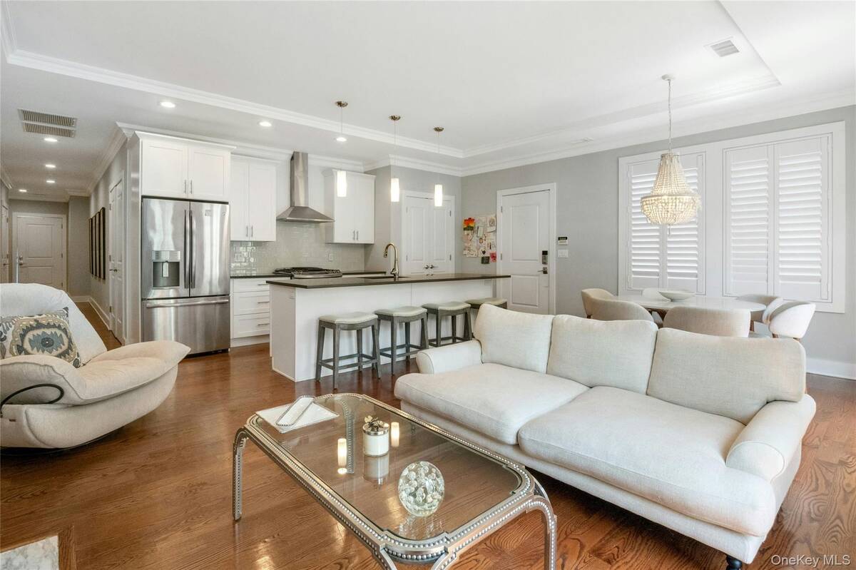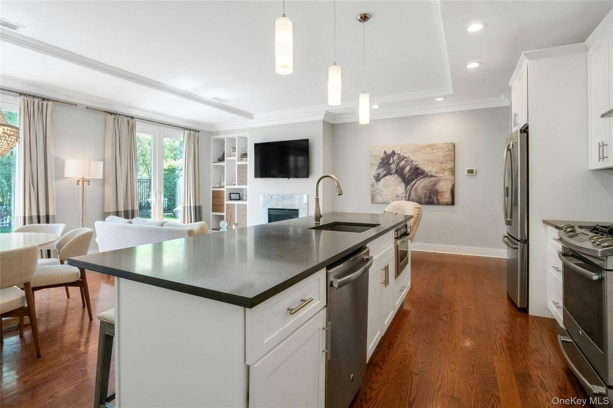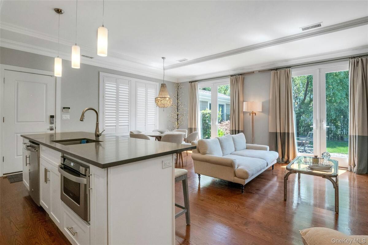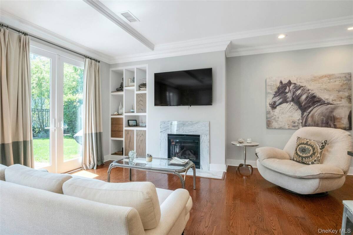 Experience an exceptional rental opportunity in the prestigious 'On the Sound' community, located in the highly desirable City Island. This exquisite condo is available for both short-term and long-term leases, with options to be furnished or unfurnished, offering flexibility to suit your needs. Enjoy the convenience of one-level living in this beautifully designed home with 11-foot ceilings and an open floor plan. The modern kitchen is equipped with custom white maple cabinetry, an island with Caesarstone countertops, stainless steel appliances, and a custom pantry. The dining and living spaces are elegantly designed, highlighted by a gas fireplace with white Carrera marble, a custom wood mantel, and built-in cabinetry with a bar area. Double doors open to a private patio and yard, creating an ideal setting for entertaining guests. The primary bedroom is a serene retreat, offering both a walk-in closet and an additional closet, along with an en-suite bathroom featuring Carrera white marble and a double sink vanity. The second bedroom and hall bath add versatility, making them suitable for guests or as a home office. Additional amenities include a one-car garage at the end of your driveway, providing ample parking, private in-unit laundry, beautiful hardwood flooring, and central air conditioning. Enjoy resort-style community features such as a clubhouse, fitness center, party room, and heated pool. With convenient access to some of the area's best restaurants and close proximity to Manhattan, this property offers the ultimate in luxury and convenience. Don't miss out on this remarkable rental opportunity!