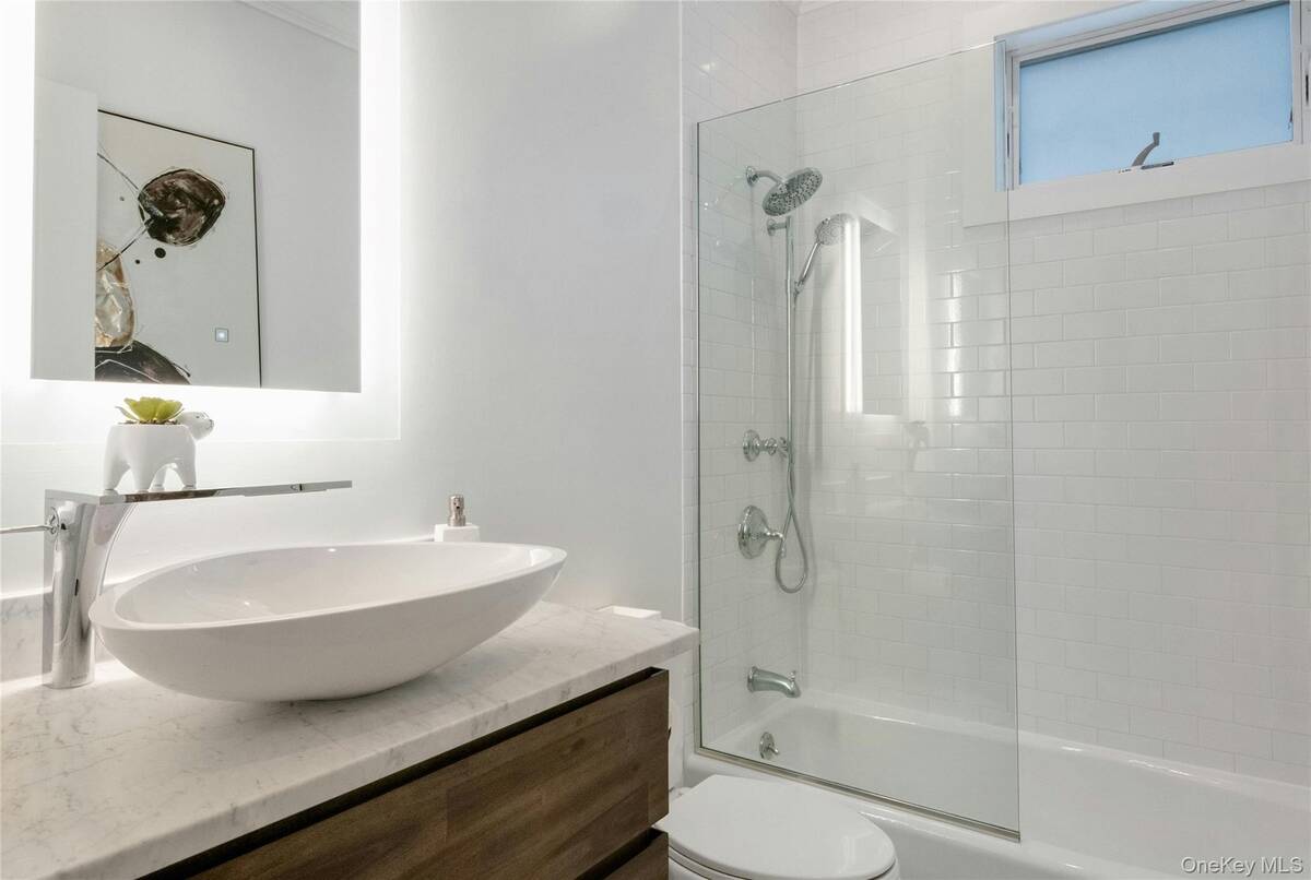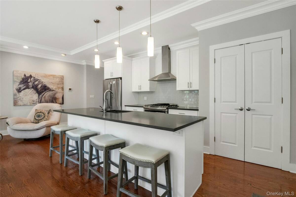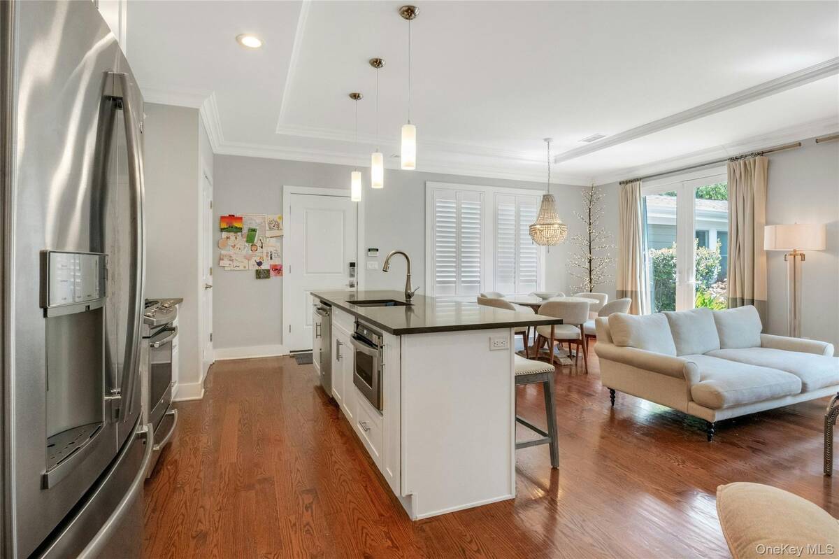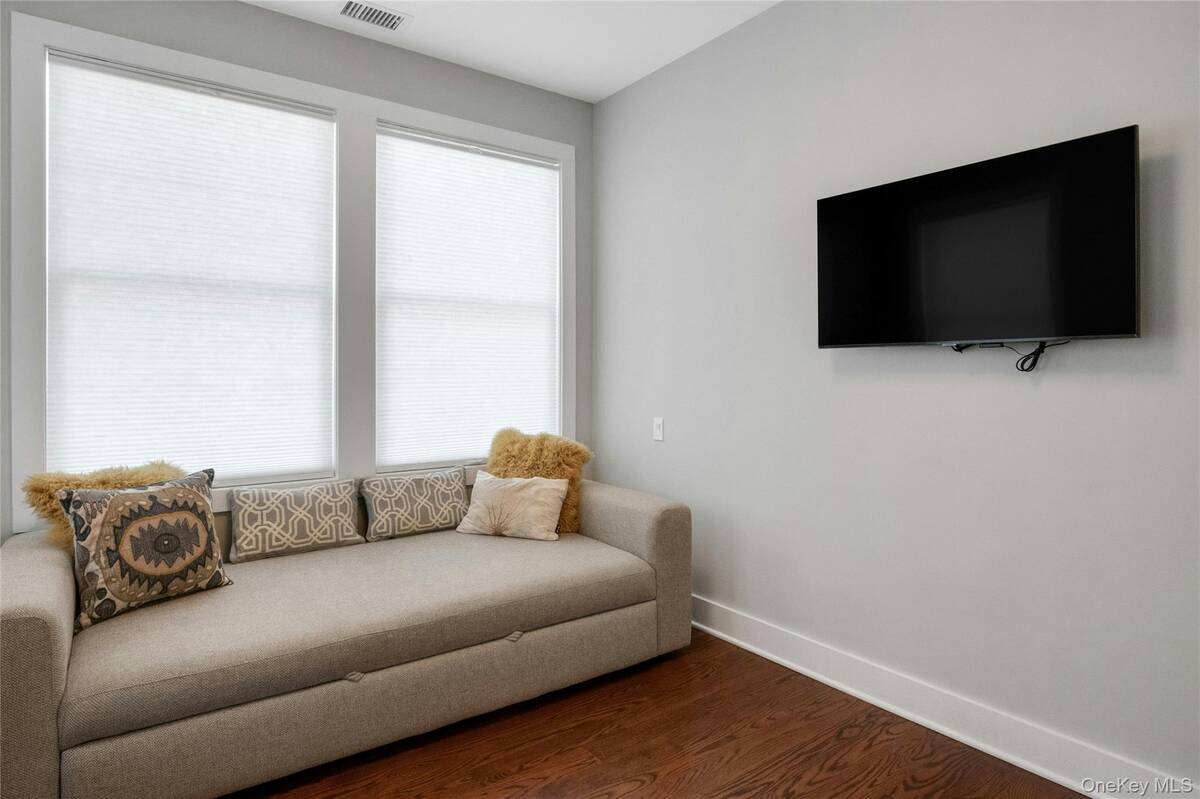 Experience an exceptional rental opportunity in the prestigious 'On the Sound' community, located in the highly desirable City Island. This exquisite condo is available for both short-term and long-term leases, with options to be furnished or unfurnished, offering flexibility to suit your needs. Enjoy the convenience of one-level living in this beautifully designed home with 11-foot ceilings and an open floor plan. The modern kitchen is equipped with custom white maple cabinetry, an island with Caesarstone countertops, stainless steel appliances, and a custom pantry. The dining and living spaces are elegantly designed, highlighted by a gas fireplace with white Carrera marble, a custom wood mantel, and built-in cabinetry with a bar area. Double doors open to a private patio and yard, creating an ideal setting for entertaining guests. The primary bedroom is a serene retreat, offering both a walk-in closet and an additional closet, along with an en-suite bathroom featuring Carrera white marble and a double sink vanity. The second bedroom and hall bath add versatility, making them suitable for guests or as a home office. Additional amenities include a one-car garage at the end of your driveway, providing ample parking, private in-unit laundry, beautiful hardwood flooring, and central air conditioning. Enjoy resort-style community features such as a clubhouse, fitness center, party room, and heated pool. With convenient access to some of the area's best restaurants and close proximity to Manhattan, this property offers the ultimate in luxury and convenience. Don't miss out on this remarkable rental opportunity!