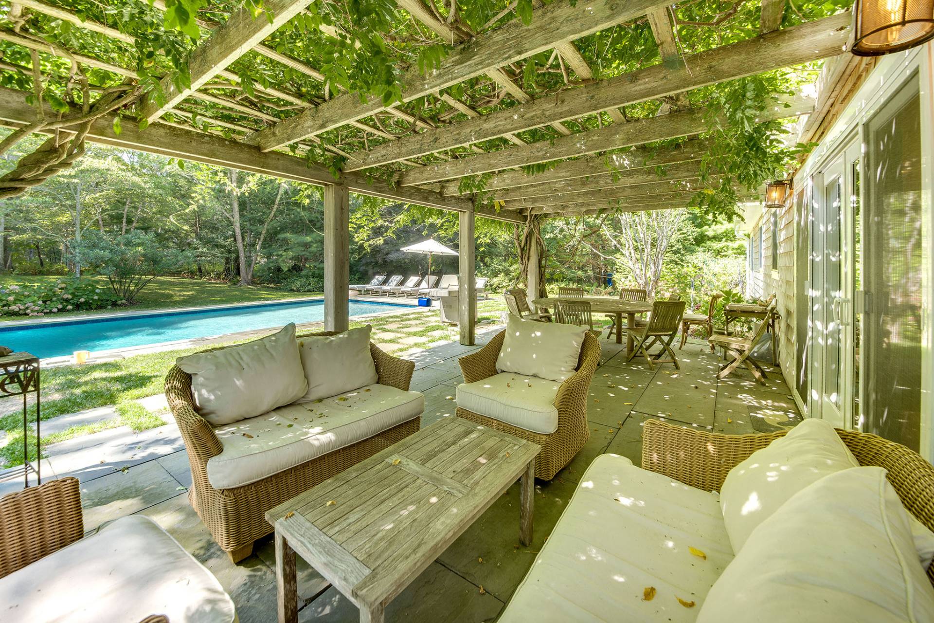 A unique chance to own two adjacent properties, each set on .83 acres, at the end of a coveted cul-de-sac between East Hampton Village and Amagansett. These substantial homes, updated and modernized over the years, offer flexibility, privacy, and timeless appeal. 8 Laura's Lane features a classic Hamptons Traditional-style design with a layout that includes four bedrooms, four full baths, two additional rooms for overflow or office use, a den, formal dining room, and an eat-in kitchen. The finished lower level adds another 1,200 +/- sq. ft. of living space, while exterior highlights include an attached garage, covered front porch, and a wisteria-covered rear trellis overlooking the heated gunite pool and maturely landscaped backyard. Next door, 10 Laura's Lane offers a striking contrast in a modern Saltbox Farmhouse design, fully renovated inside and out. The soaring ceilings in the living room flow seamlessly into a coastal-inspired dining area and a custom kitchen with rich navy-blue cabinetry and access to a screened-in porch. Each bedroom is ensuite, including the first-floor primary suite, and the 1,100 sq. ft. walk-out lower level expands the home's entertaining and relaxation potential. Outside, enjoy a heated gunite pool with retractable cover, surrounded by stacked stone walls, lush hydrangeas, and mature specimen plantings. The wooden deck invites al fresco dining and while the blue stone pool surround promotes lounging in the sun-filled south-facing yard. Purchasing both homes together offers a rare multi-generational opportunity that is ideal for hosting loved ones and friends, while preserving privacy for owners in a second, fully appointed residence. An exceptional investment in a sought-after East Hampton enclave.
